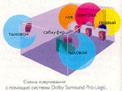 - это то, что можно иметь дома. Хотя эта система носит иное название, однако декодеры Dolby Surround работают аналогично декодерам Dolby Stereo. Разница заключается лишь в том, что в главных каналах не используется система шумоподавления. Если кинофильм, озвученный Dolby Stereo, стереофонически переписан на видеокассету, видеодиск или же передан по кабельным или спутниковым телеканалам, то озвучание сохраняется таким же, как и в кинотеатре, отсутствует лишь шумоподавление. Каждая такая кассета, диск или телепередача приносят в наш дом информацию о пространственном звуке в закодированном виде. Если мы хотим ее услышать, необходимо приобрести декодер Dolby Surround, который выделит звучание дополнительных каналов из смеси. Хотя первые декодеры Dolby Surround появились еще в 1982 году однако эго была скорее лишь проба сил, а не полномасштабное внедрение. В дальнейшем декодеры стали выпускаться как самостоятельные блоки или в комплекте с усилителями мощности, а также как составная часть телевизоров, спутниковых тюнеров, видеомагнитофонов и проигрывателей видеодисков. Система Dolby Surround существует в двух вариантах: упрощенном и более совершенном - с дополнением к ее названию двух слов: Pro-Logic. Оба варианта работают с любым "долбированным" звуком. Хотя более дешевая пассивная система Dolby Surround (выделяющая лишь тыловые каналы) и обеспечивает неплохие результаты, однако фронтальные каналы она не отделяет так хорошо, как профессиональная Dolby Stereo. Активная система Dolby Surround Pro-Logic копирует все, что происходит в кинотеатре. Это означает, что она, во-первых, выдает совершенно самостоятельный центральный канал, по которому передаются диалоги, а во-вторых, лучше разделяет информацию, относящуюся к отдельным каналам. Его матричный декодер с логикой (отсюда следует название Pro-Logic) точно определяет место, откуда должен раздаваться звук. Система THX